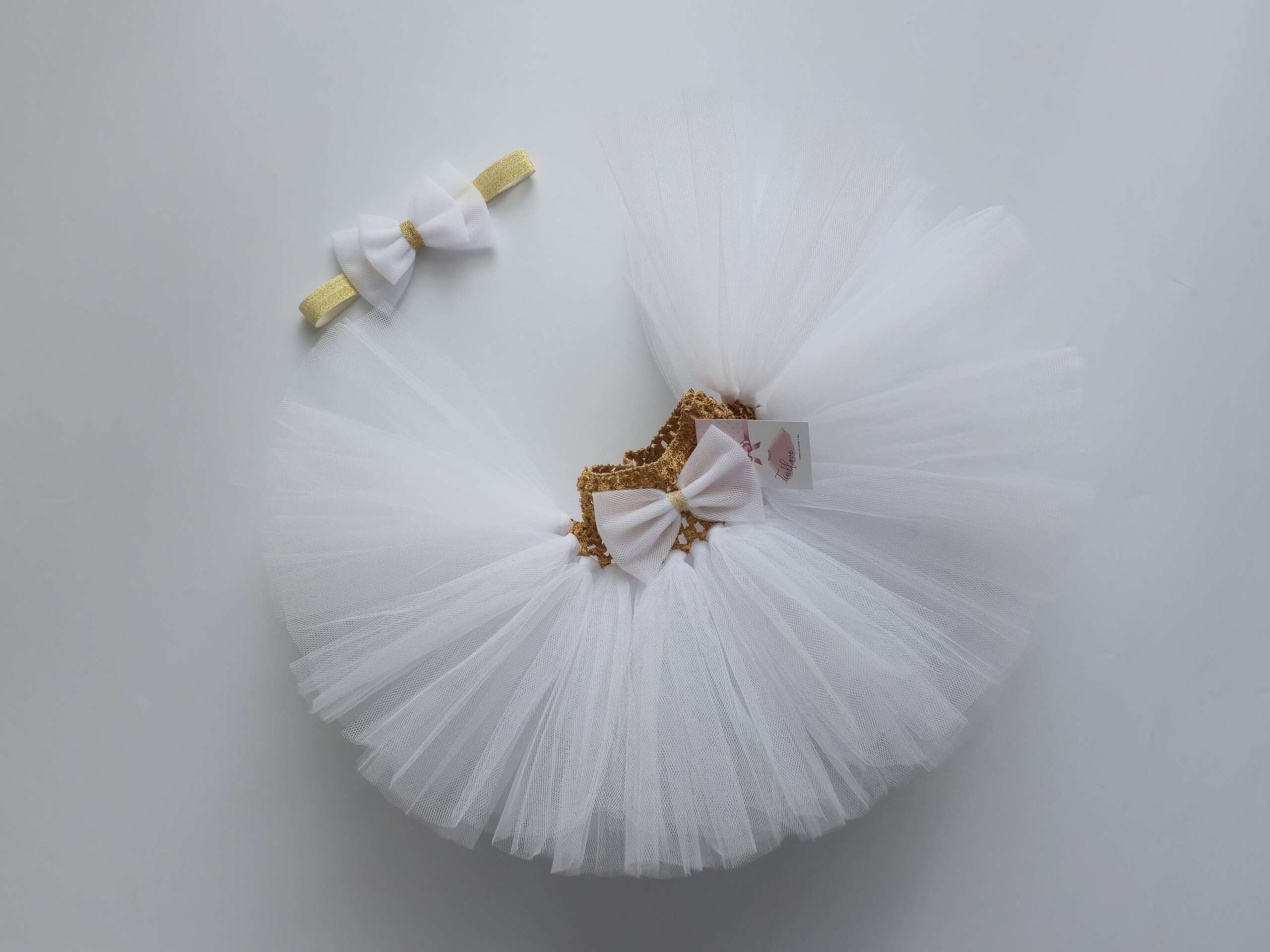 Tiulowa spódniczka TUTU, biała z ozdobną kokardką na pasie. Spódnica 100% HANDAMADE