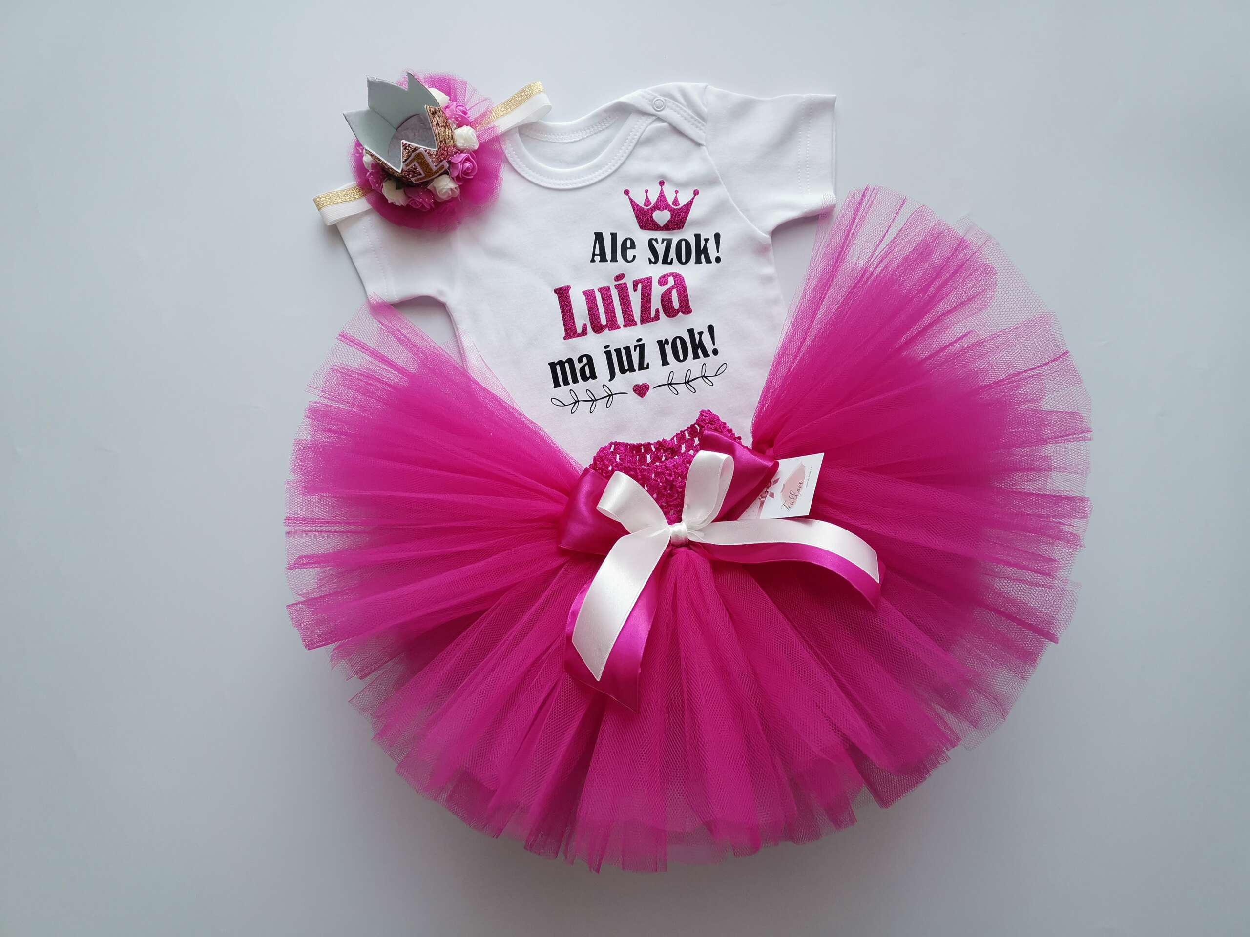 Opcjonalnie: Opaska z kokardą i/lub korona na główkę