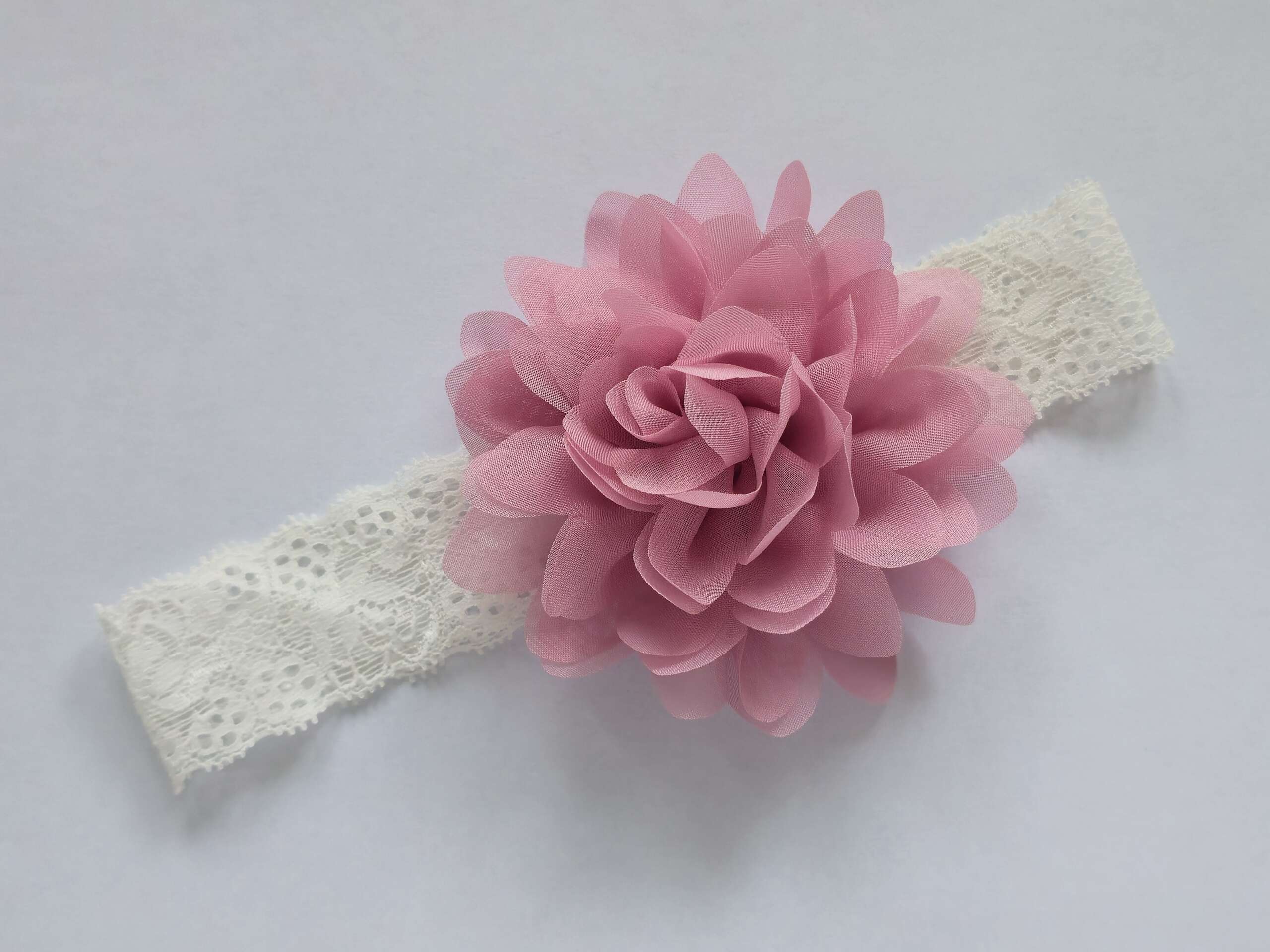 Koronkowa opaska + kwiatuszek brudny róż