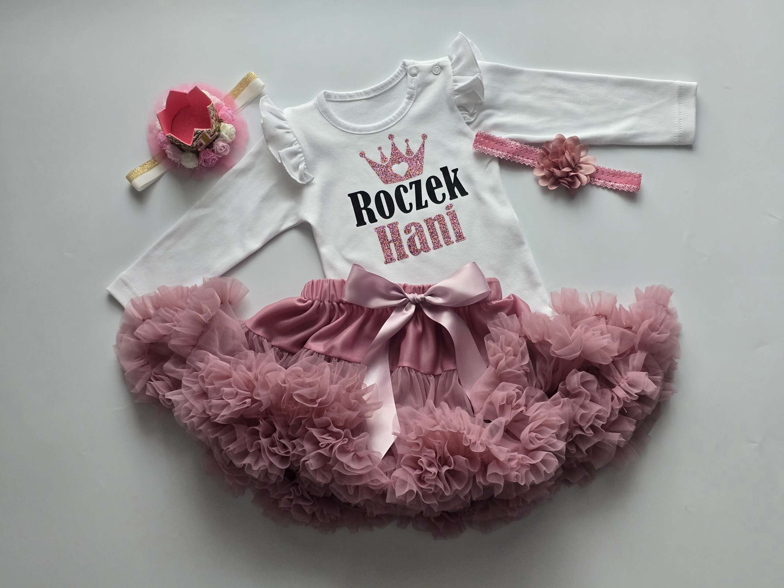 PS17 Komplet na roczek dziewczynki tiulowa spódniczka Pettiskirt BRUDNY RÓŻ