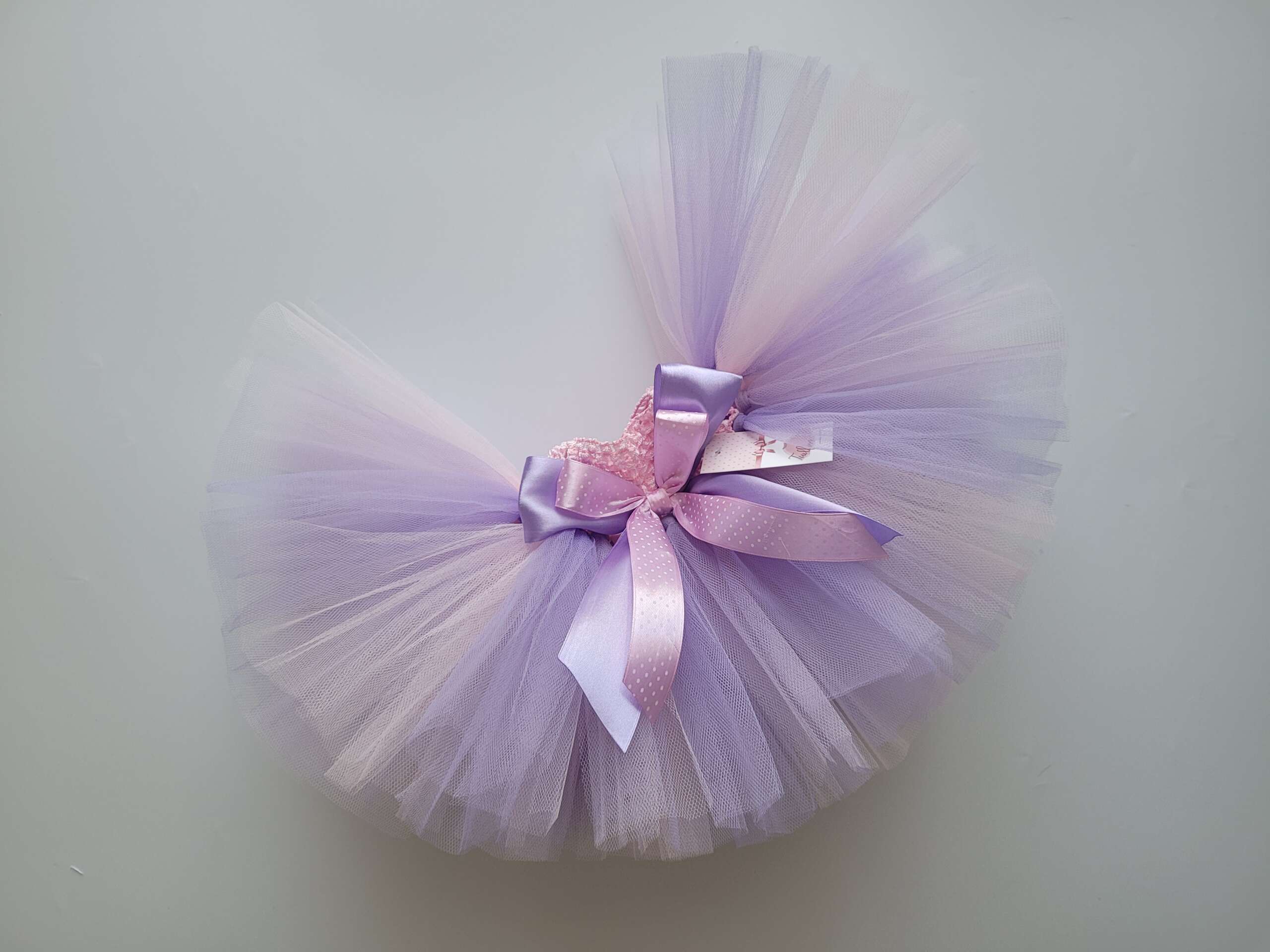 Tiulowa spódniczka TUTU, pudrowo – lawendowa z ozdobną kokardą na pasie. Spódnica 100% HANDAMADE