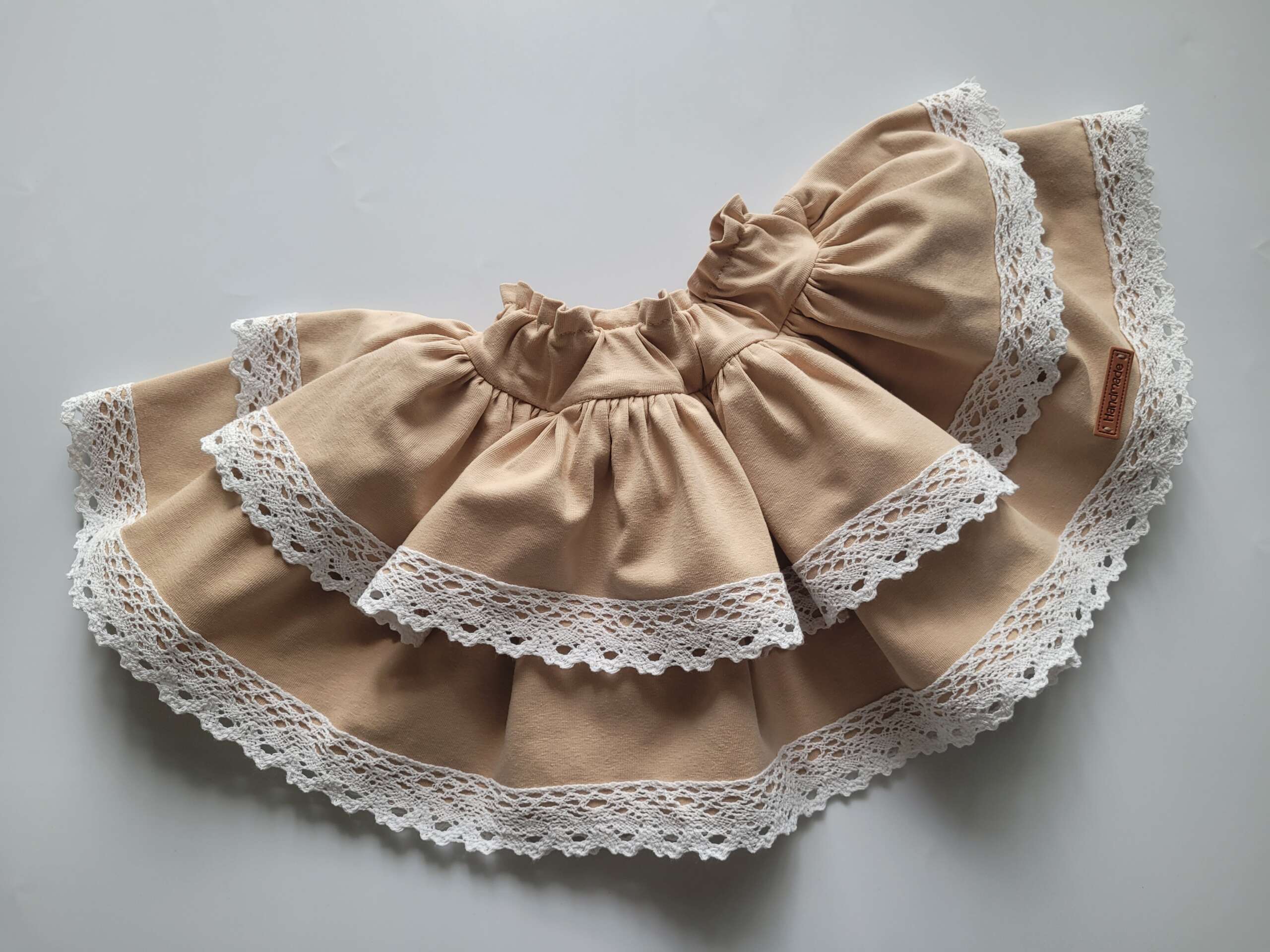 Spódniczka z falbankami 68-128 beżowa z koronką