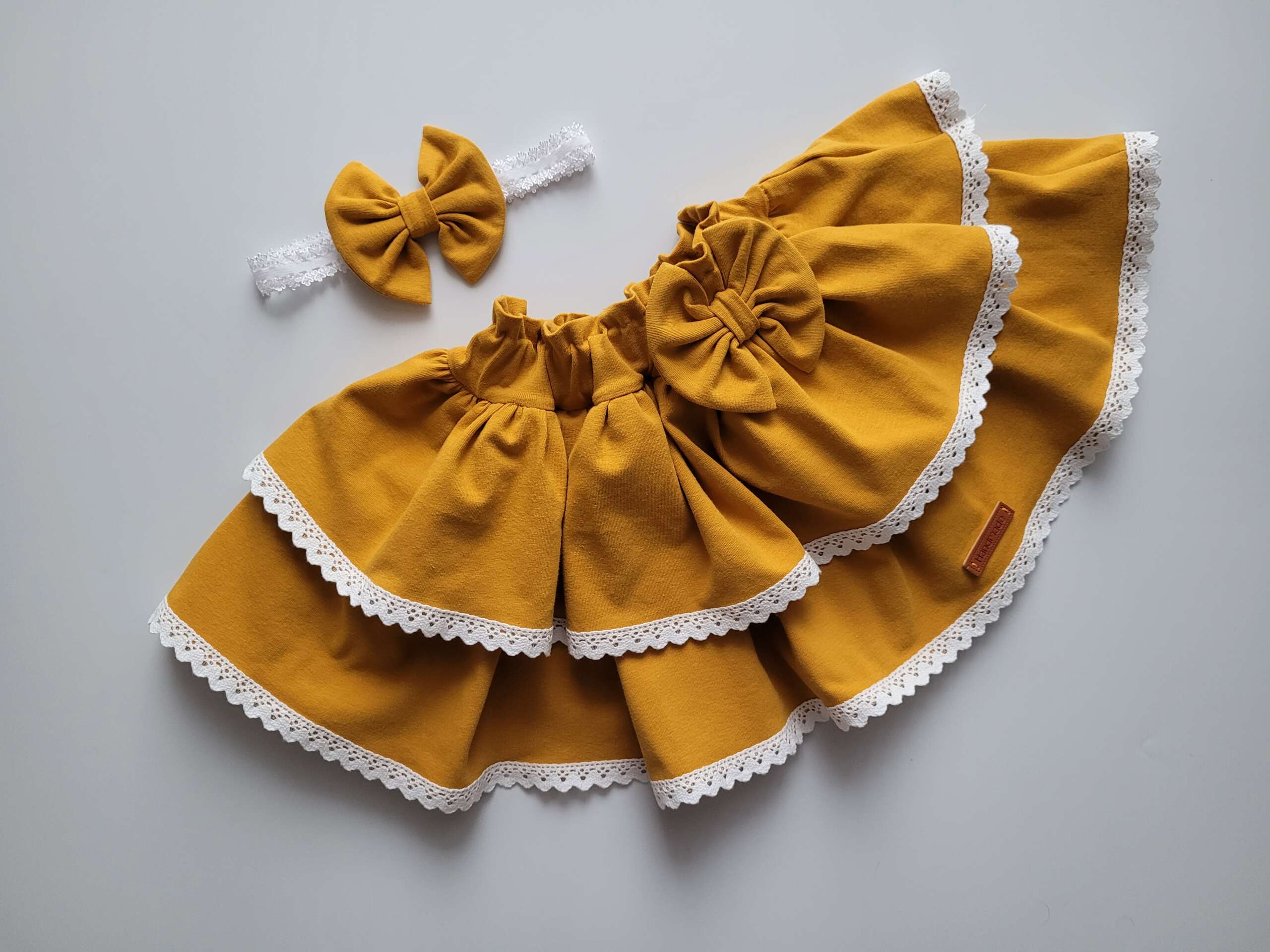 Dzianinowa spódniczka z dwurzędową falbanką, wykończona koronką. Najwyższa jakość! Materiał 95% bawełna i 5% elastan wyprodukowany w Polsce.