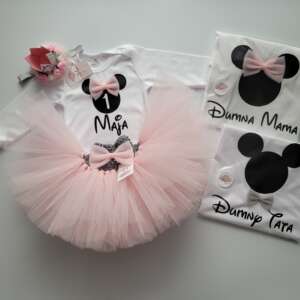 Spódniczka brudny róż i body z falbankami na ramionach